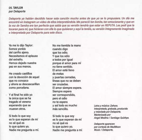 | Lyrics By, Music By Zahara | Mastered By Santiago Quizhpe, Ángel Medina | Recorded By, Producer, Mixed By Delaporte | |||