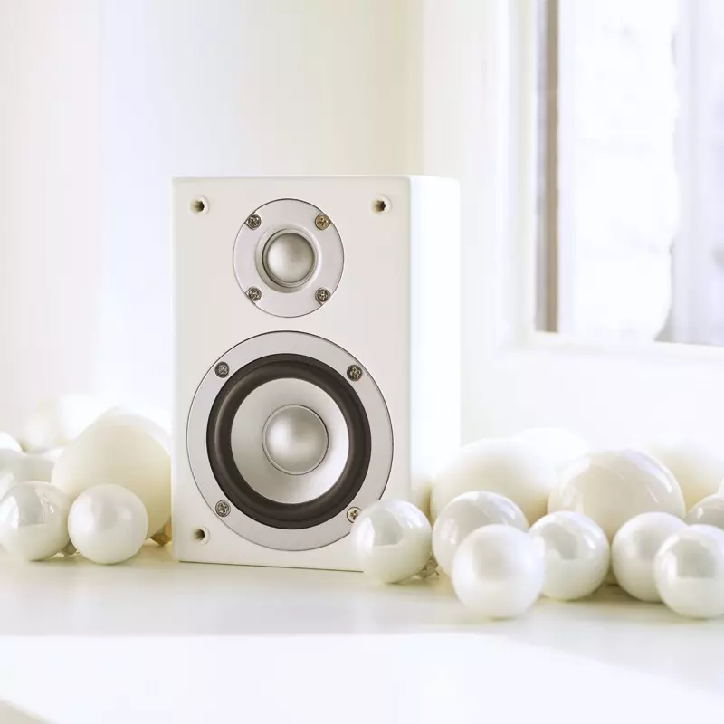 Konstrukce využívá zaoblenou MDF ozvučnici, která pomáhá omezovat rezonance a vnitřní stojaté vlnění. Povrch tvoří vysokolesklý bílý lak, aplikovaný ve více vrstvách, takže reprosoustavy působí velmi elegantně a snadno zapadnou do moderního interiéru. Součástí dodávky jsou také krycí mřížky z průzvučné tkaniny a držáky pro nástěnnou montáž.