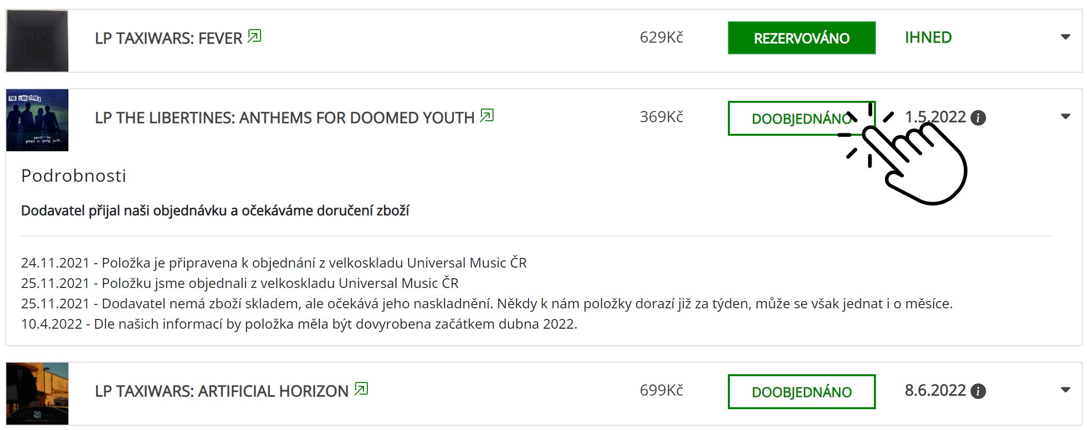 Zkontrolujte si pečlivě, zda jste si například neobjednali CD namísto vinylu. Každý děláme chyby. Pokud se obsah opravdu neshoduje s objednávkou, s omluvou vás poprosíme o vyplnění reklamačního formuláře. Výměna proběhne samozřejmě na naše náklady.